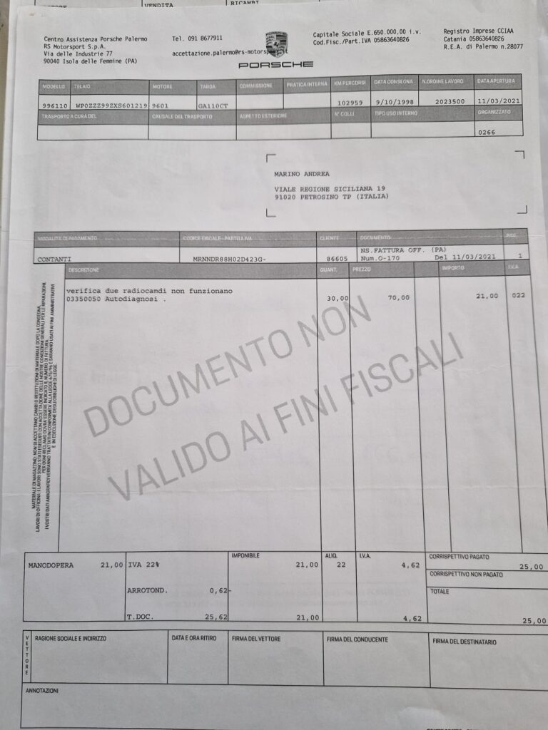 Ultimo service in officina Marrocco Motorsport, specializzata Porsche, a dicembre 2024 a 114.500 km.