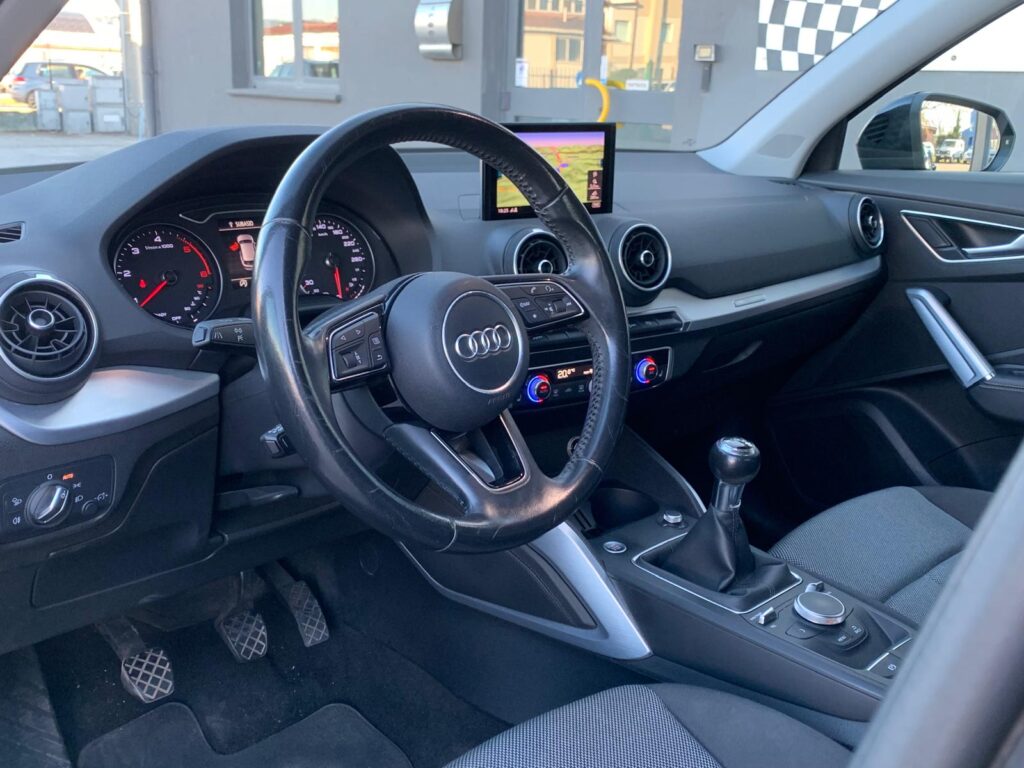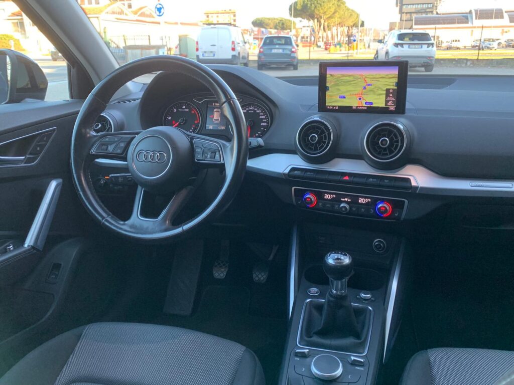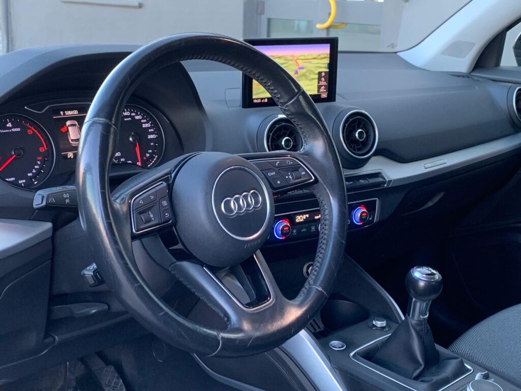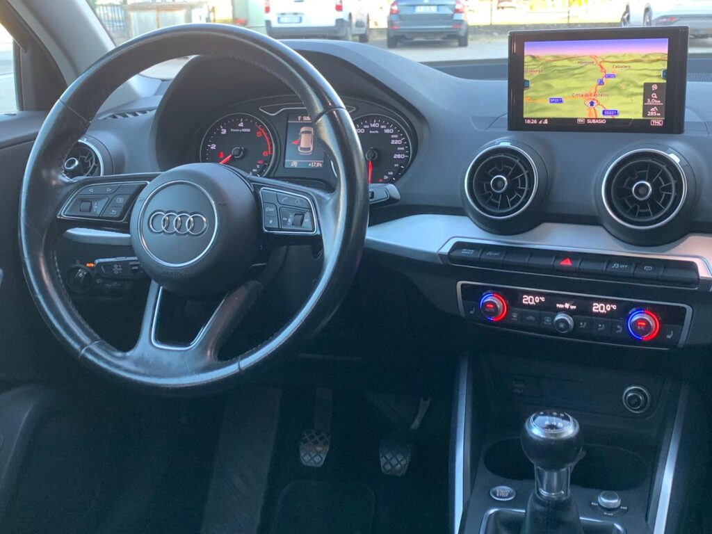Audi Q2 1.6 TDI S line con cambio manuale, navigatore (appena aggiornato), cruise control adattivo, fari full led automatici con frecce dinamiche, key less, portellone elettrico, clima automatico bizona, cerchi da 18", sensori di parcheggio, App connect.
